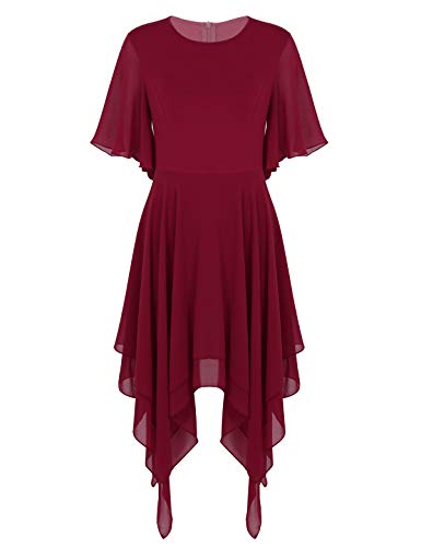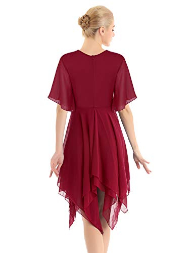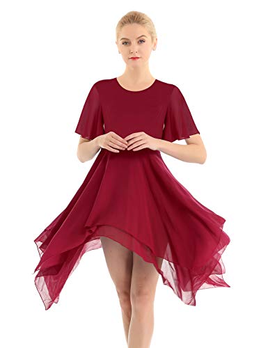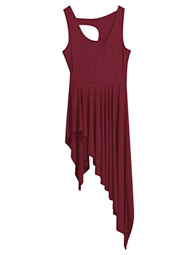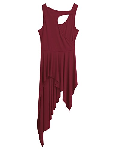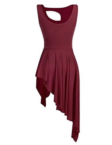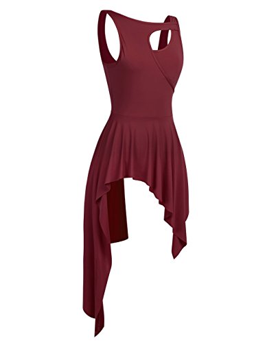 CHICTRY Vestido de Danza Contemporanea Mujer Maillot Baile Moderno Vestido de Ballet Largo Ropa Danza Latina Falda Irregular Vino Small