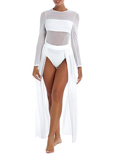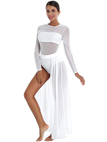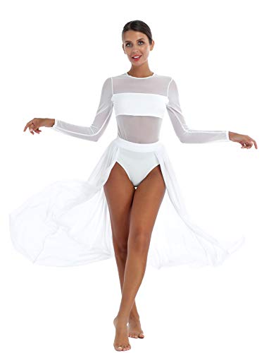 IEFIEL Vestido Danza Ballet para Mujer Vestido Gasa Sin Mangas de Danza Gimnasia Maillot con Falda Mallas Irregular Vestido Baile Moderno Blanco C XL