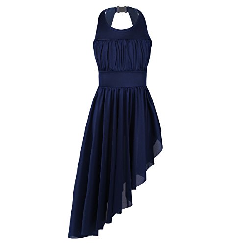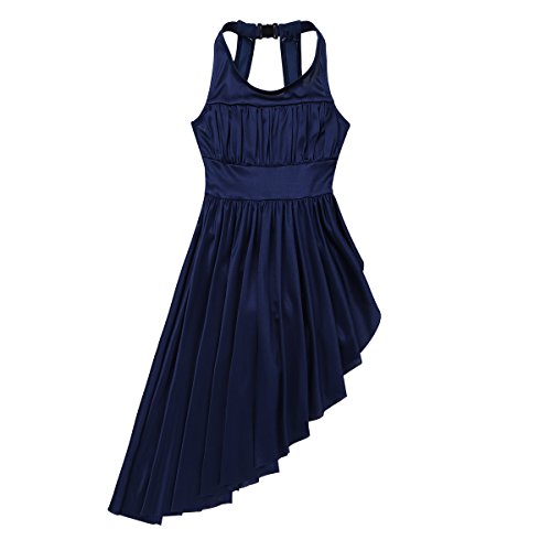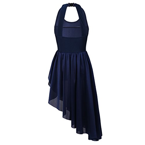 ranrann Irregular Vestido de Ballet para Mujer Maillot Largo de Gimnasia Rítmica Cuello Halter Leotardo de Danza Lírica Disfraz de Bailarina Azul Marino Small
