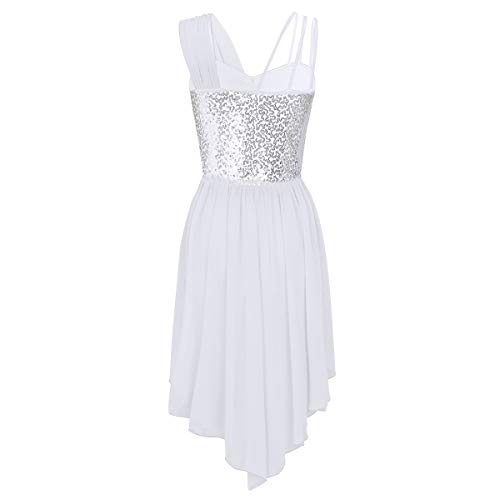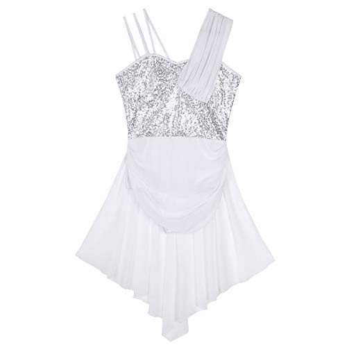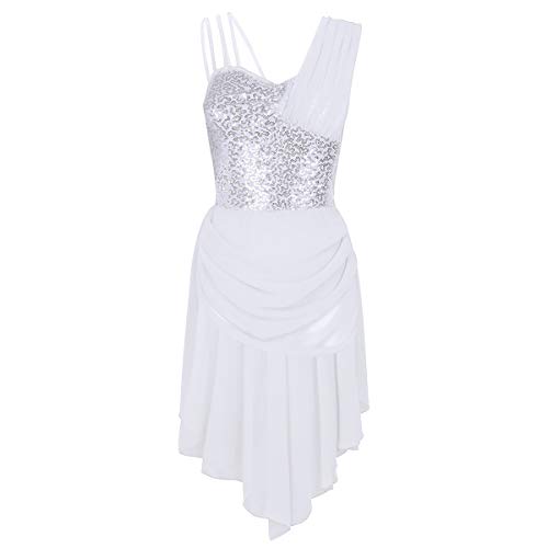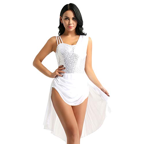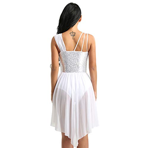 ranrann Vestido Tutú de Ballet Lentejuelas para Mujer Chifón Irregular Vestido de Danza Clásica Hombro Descubierto Traje Bailarina Maillot Patinaje Artístico Blanco X-Large