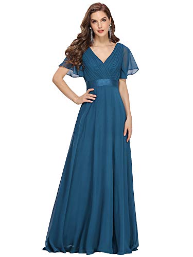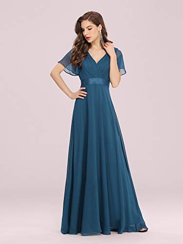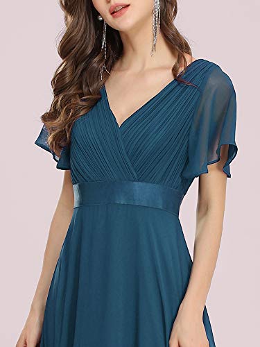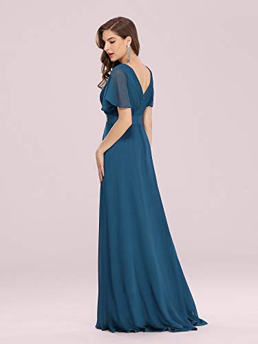 Ever-Pretty A-línea Vestido de Noche Cuello en V Manga Corta Gasa Corte Imperio para Mujer Verde Azulado 36