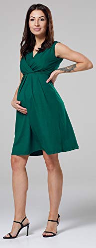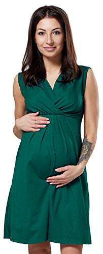 Happy Mama. para Mujer Vestido Skater premamá de Lactancia. Escote de Pico. 808p (Verde Oscuro, 36, S)