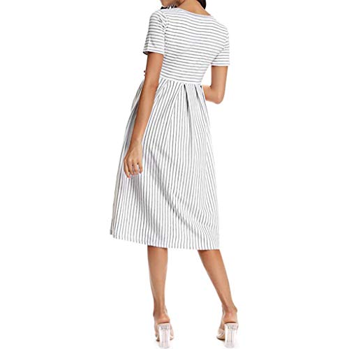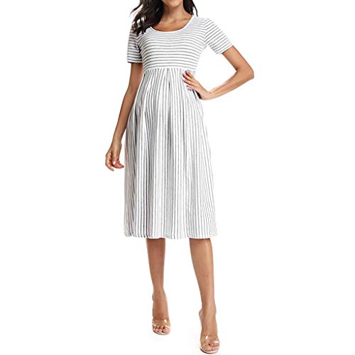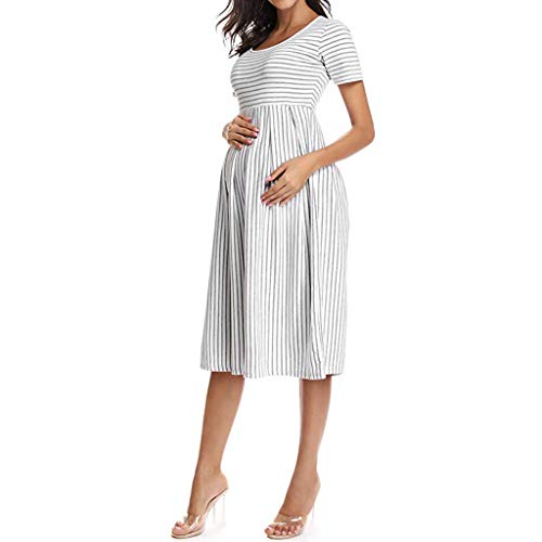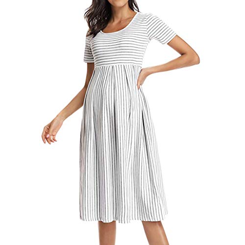 RISTHY Vestidos de Maternidad, Ropa Mujer Embarazada Vestidos de Premamá Mujer Midi Vestido de Lactancia Rayas Cuello Redondo Mangas Cortas Casual Verano