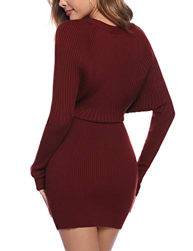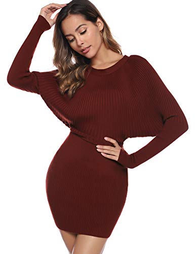 Aibrou Vestidos a Punto Mujer,Vestido Sexy de Una Pieza de Punto elástico,Vestidos de Jersey Manga Larga Vestido Invierno Vestido Fiesta (Vino Rojo, XXL)