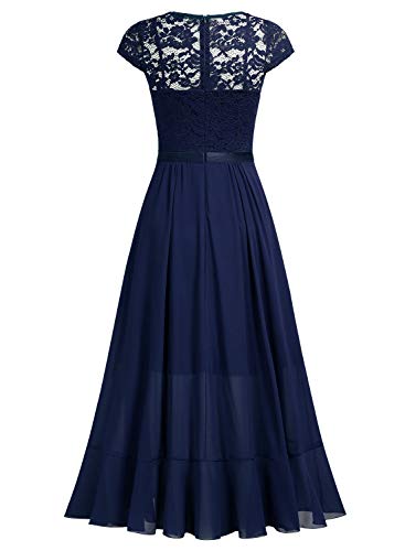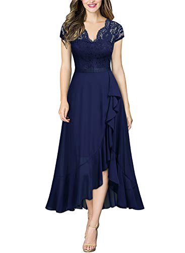 Miusol Encaje Gasa Alto Bajo Noche Vestido Largo para Mujer Azul Small