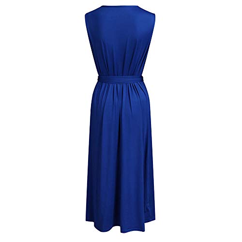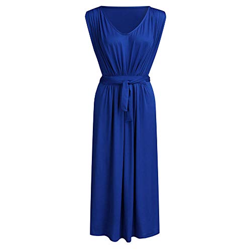 OMZIN Mujer Vestido de Ocio Especialmente Fiesta Vestido Largo Cuello Redondo Corte Ajustado Vestido Informal Azul Pavo Real XXXL