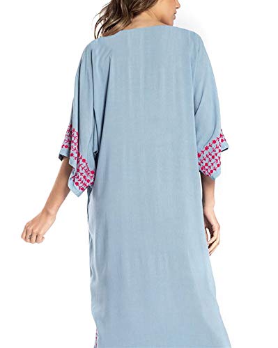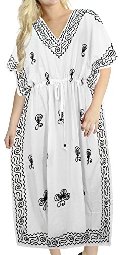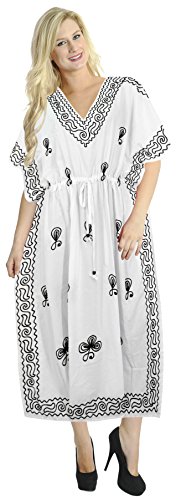 LA LEELA Mujeres caftán Rayón túnica Bordado Kimono Libre tamaño Largo Maxi Vestido de Fiesta para Loungewear Vacaciones Ropa de Dormir Playa Todos los días Cubrir Vestidos Ghosts Blanco_P274