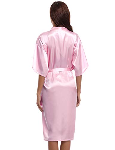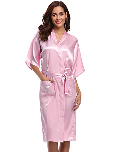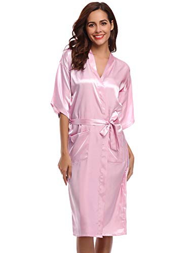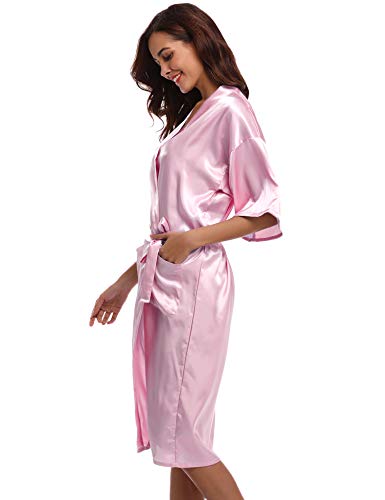 Hawiton Kimono Mujer Bata Saten Manga Corta Novia Albornoz Boda Pijama de Seda Vestidos con Cinturilla Elegante Ropa de Dormir Verano
