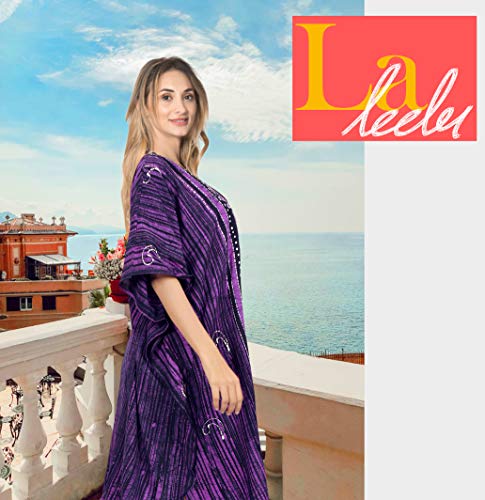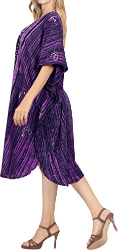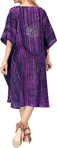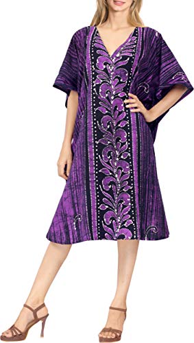 LA LEELA Mujer Kaftan Algodón Túnico Batik Kimono Estilo Más tamaño Vestido para Loungewear Vacaciones Ropa de Dormir & Cada día Cubrir para Arriba Tops Camisolas Playa Violeta_Y607