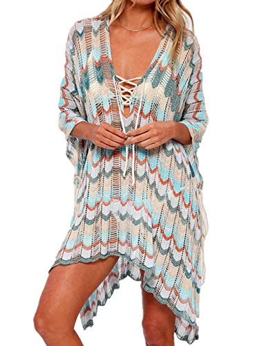 AiJump Floral Encaje Vestido de Playa Kaftan Kimonos Pareos Bohemia Cover Ups para Mujer