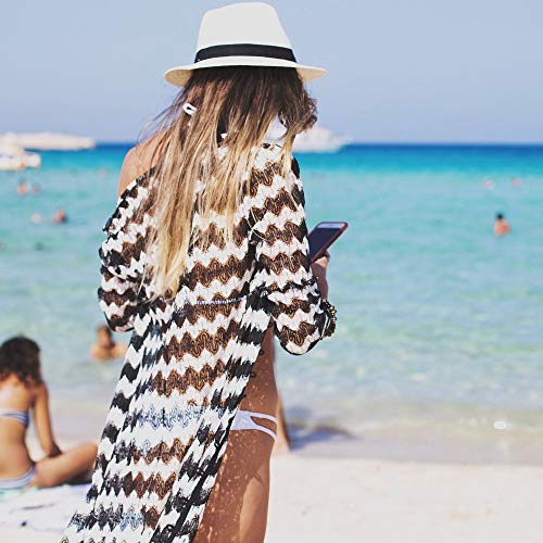 AiJump Vestidos de Playa de las mujeres del cordón floral transparente Kaftan Maxi Bergre vestido largo kimono de la cubierta del traje de baño Ups para Mujer Talla nica Blanco Negro