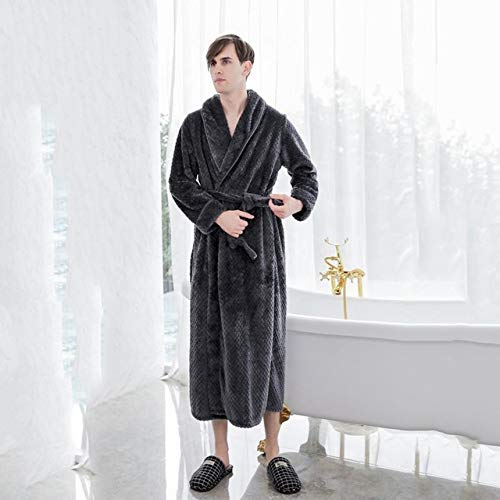 Traje de Bata Kimono de Terciopelo Coral Gris para Mujer Vestido de Albornoz de Manga Larga camisón Pijama Casual