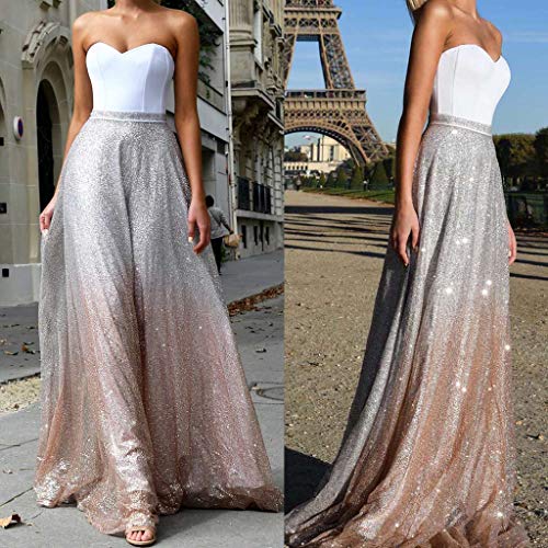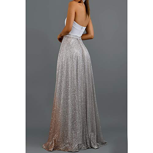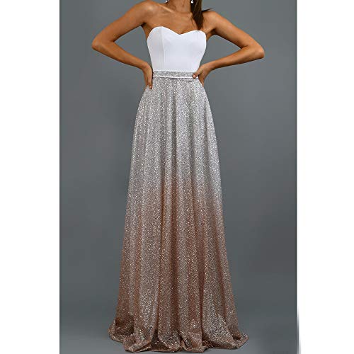 YWLINK Mujeres Vestido Elegante del Partido Moda Sin Mangas Sin Tirantes Atractivo Blanco Vestido De Fiesta De Coctel Slim Fit Lentejuelas Vestido De Novia Falda(Blanco,L)