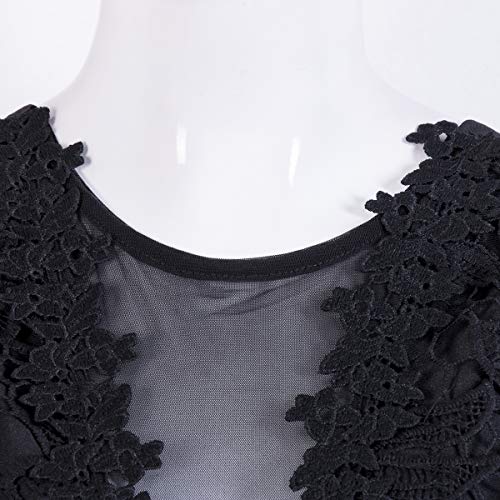 Mono de Encaje Mujer Verano Body sin Mangas Escote en V sin Respaldo Transparente Bodysuit Elegante Tops Traje de Mujer para Casual Fiesta Playa (Negro, M)