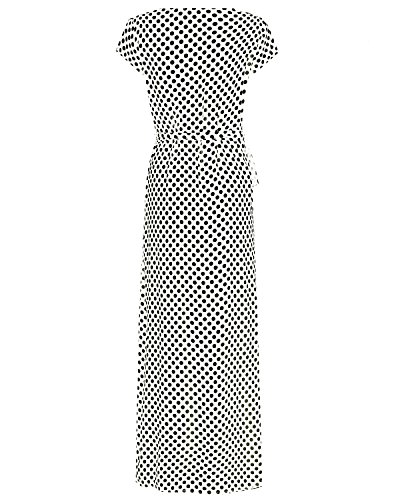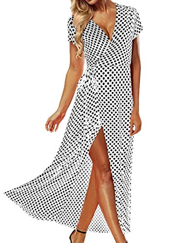 ACHIOOWA Mujer Vestido Elegante Casual Playa Bohemio Dress Lunares Cuello V Manga Corta Escote Fiesta Cóctel Falda Larga Blanco 2XL