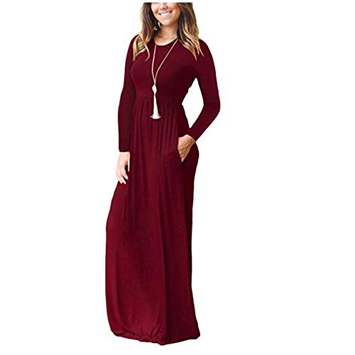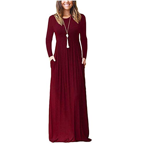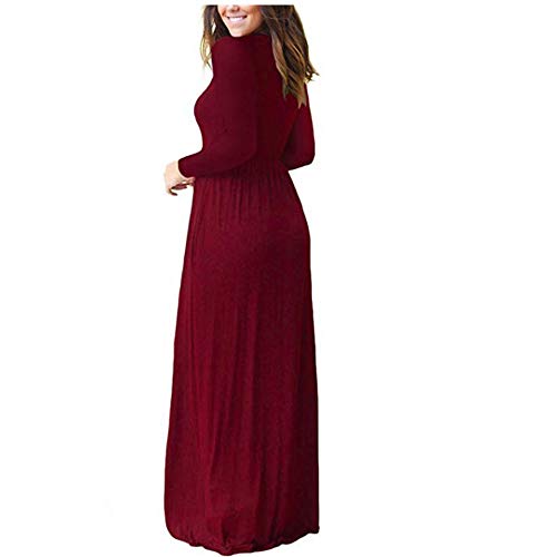 ZNYSTAR Mujer Casual Playa Estidos Largos Maxi Vestido con Bolsillo (Small, Wine Red)