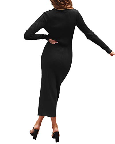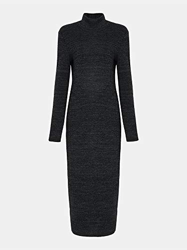 Auxo Vestido Negro a Punto Cuello Alto Suéter Larga Elegante Clásico para Mujer Jerséy para Otoño Invierno Fiesta Cóctel Noche 01-Negro S