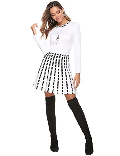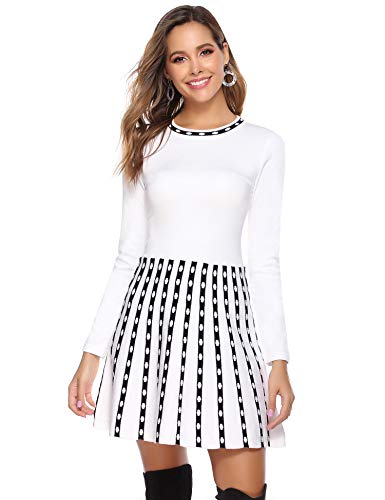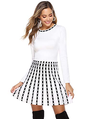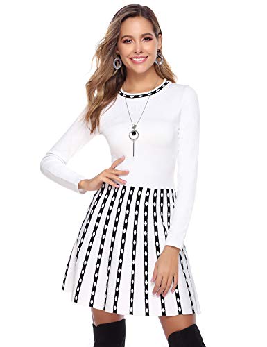 - 【Características】Vestido de punto para mujer, manga larga, dobladillo acampanado decorado con rayas y lunares, son más juveniles y vigorosos. Apto para todo tipo de cuerpos. Perfecto para primavera, otoño, invierno, navidad.