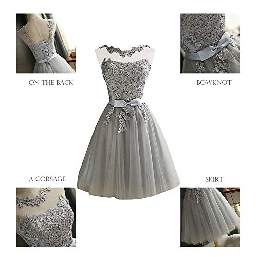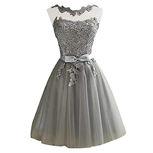 Mallalah Mini Vestidos para Mujer Brillo con Encaje Princesa Vestido de Noche de Tul Vestido de Dama de Honor Aplique Corto M-2XL (XL, Gris)