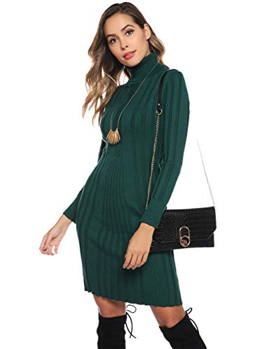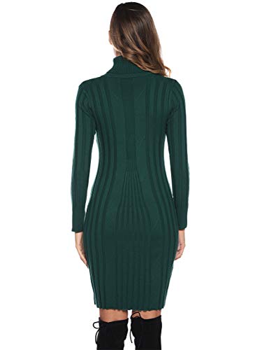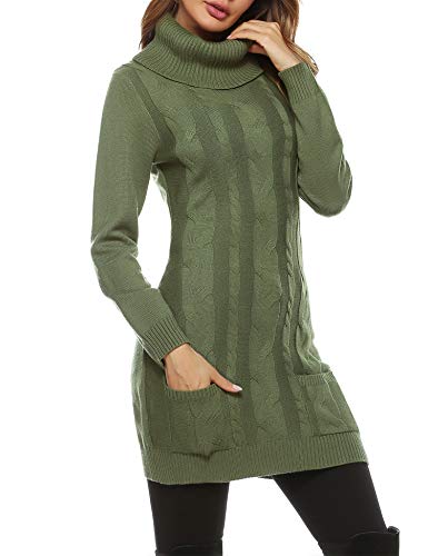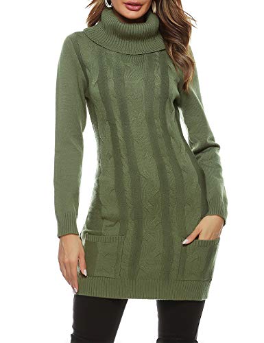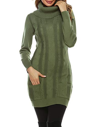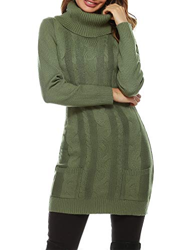 Aibrou Vestido de Punto para Mujer,Elegante Vestido de Suéter de Cuello Alto,Vestido Jersey de Manga Larga con Aguja Gruesa,Invierno Ejército Verde L