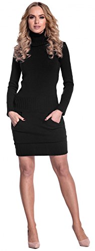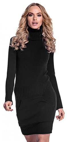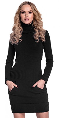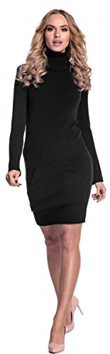Glamour Empire. Para Mujer. Vestido de Punto Bolsillo Delantero Cuello Alto. 178 (Negro, 36-38, One Size)