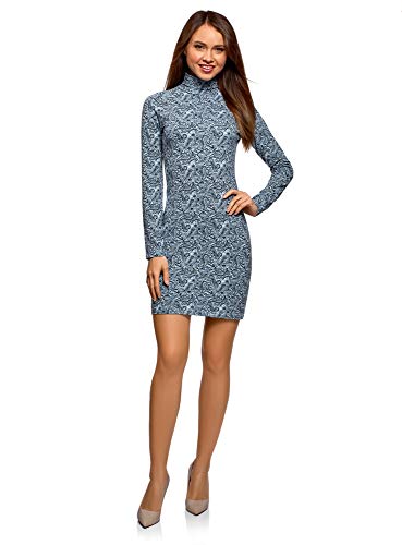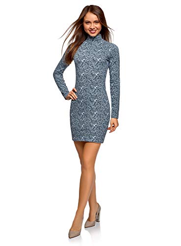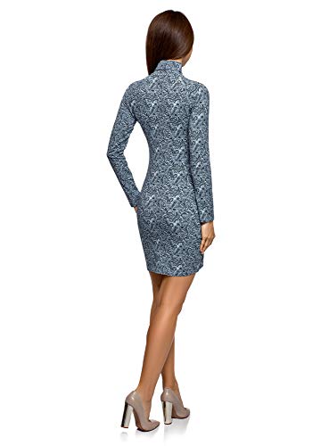 oodji Ultra Mujer Vestido Ajustado con Cuello Alto, Azul, ES 38 / S