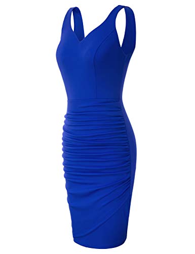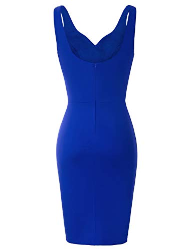 Mujer Vestido Lápiz Corto de Plisado sin Mangas con Escote Corazón para Noche M Azul CLS02497-3
