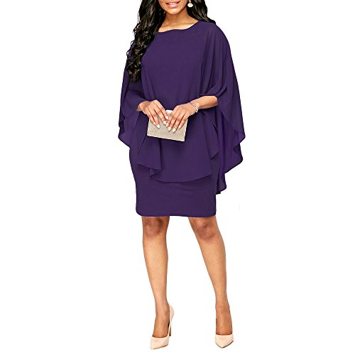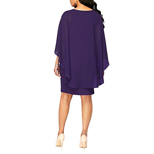 Uranus – Vestido de mujer corto estilo túnica, informal, de noche, cóctel, fiesta, gasa morado XXL