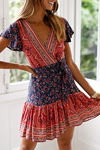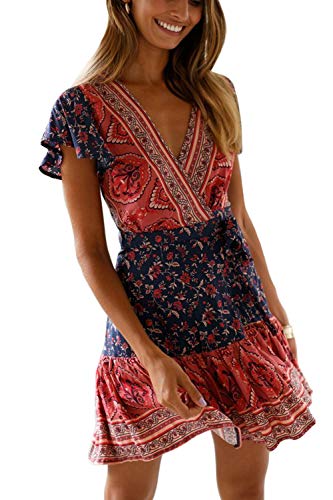 Vestidos Mujer Bohemio Corto Florales Verano Playa Fiesta Vestido Casual Magas Cortas Cuello en V Noche Playa Vacaciones 10 L