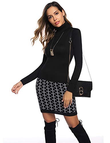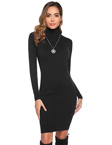 - 【Diseño】 Vestido suéter de cuello alto, lápiz de punto, bodycon, las mangas son bastante largas; el color clásico nunca pasará de moda, este elegante suéter de cuello alto viste tu figura y muestra tu talla; ideal para parte u ocasional, trabajo, vacaciones, vocación. Este suéter de cuello alto se combina bien con cualquier prenda superpuesta, como un blazer o un chaleco de punto