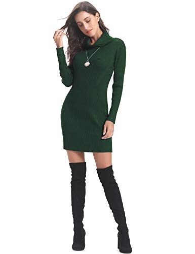 Aibrou Vestido de Punto Cuello Alto para Mujer,Vestido Ajustado Manga Larga Elegante Clásico,Vestidos Jersey Invierno (Verde, L)