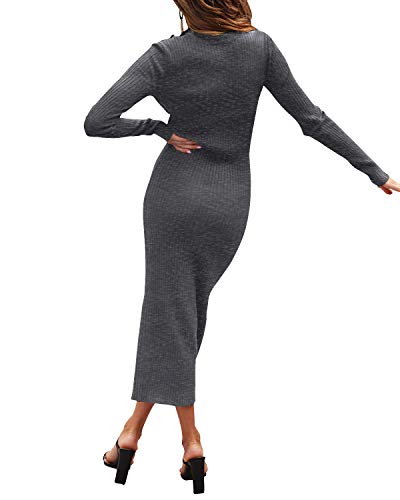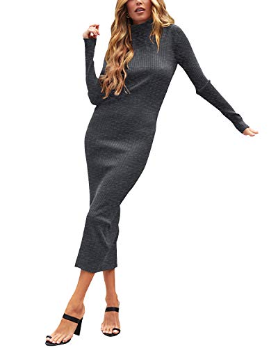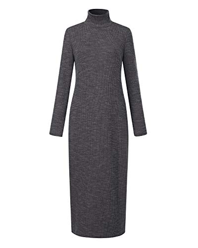 Auxo Vestido a Punto Cuello Alto Suéter Larga Elegante Clásico para Mujer Jerséy para Otoño Invierno Fiesta Cóctel Noche 01-Gris Oscuro S