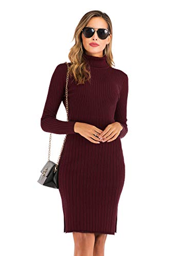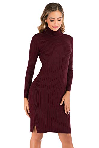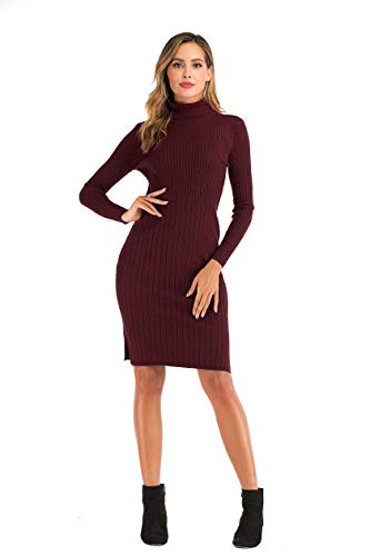 - 【Características】El vestido de suéter de cuello alto agrega un elemento de glamour a su uso diario, manga larga, por encima de la rodilla, el vestido de suéter muestra tus curvas perfectas.Perfecto para primavera, otoño, invierno.