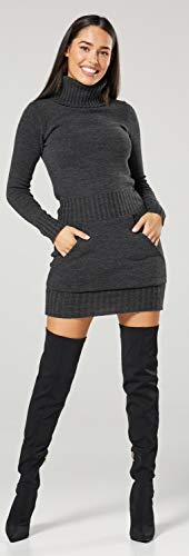 Glamour Empire. Para Mujer. Vestido de Punto Bolsillo Delantero Cuello Alto. 178 (Grafito, 36-38, One Size)