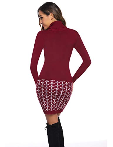 Hawiton Vestido de Punto para Mujer Vestido de Suéter de Cuello Alto de Manga Larga Dobladillo Estampado Vestido de Invierno