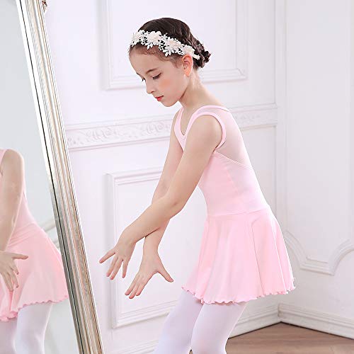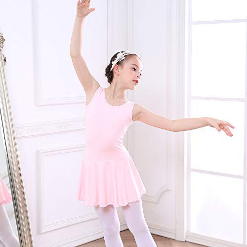 Bezioner Vestido de Ballet Maillot de Danza Gimnasia Leotardo Algodón Body Clásico para Niña Rosa 110