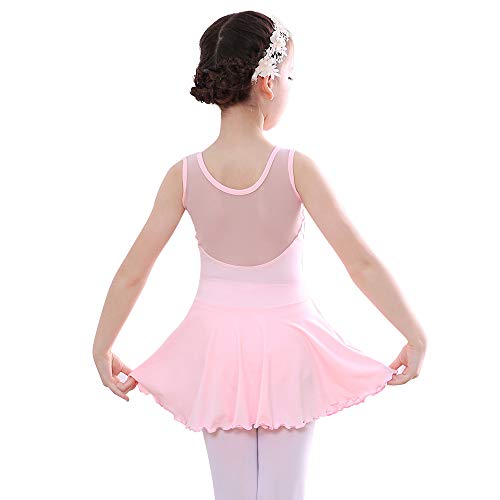 Bezioner Niña Vestido de Ballet Maillot de Danza Gimnasia Clásico Tutú sin Mangas con Falda Rosa 120