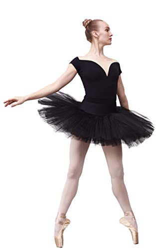 DANCEYOU Tutú Profesional con Tul de 7 Capas Falda Suelta Clásica de Ballet Vestido de Baile Blanco y Negro con Bragas para Niñas y Mujeres, Negro M