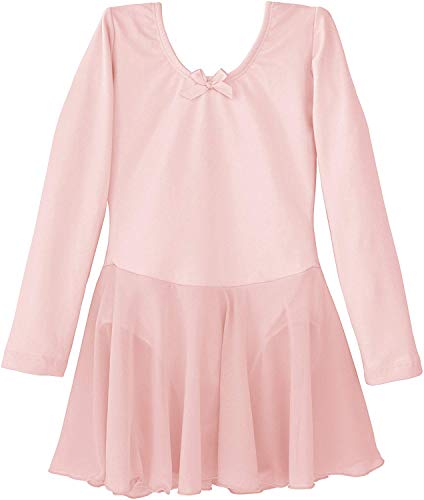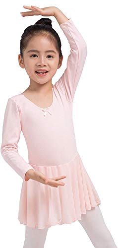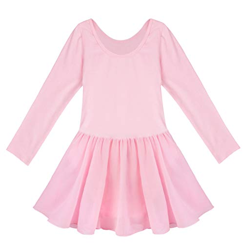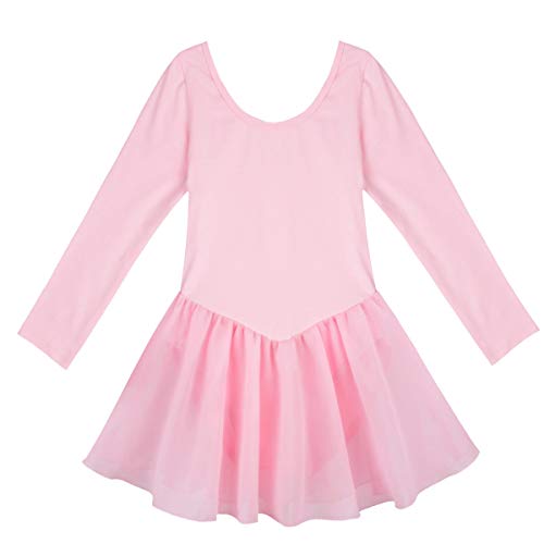 IEFIEL Vestido de Ballet Clásico Niñas Maillot Danza Gimnasia Leotardo Gimnasia Ritmica con Falda Corta Vestido Manga Larga de Patinaje Artistico Rosa A 5-6 años