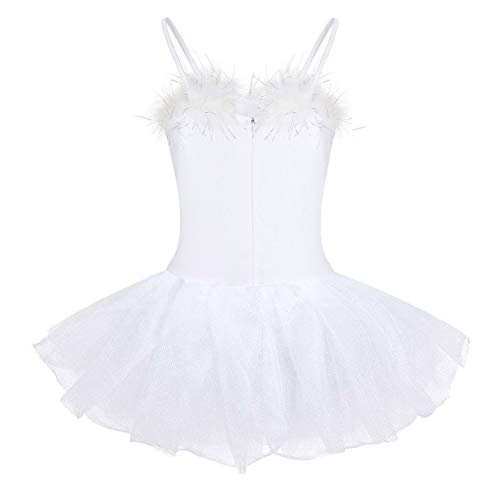 FONLAM Vestido Maillot de Ballet Tutú Niña, Blanco, 4-5 años
