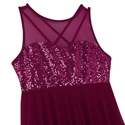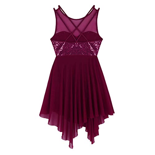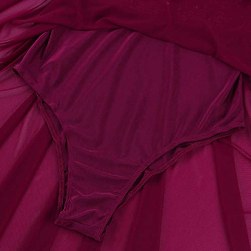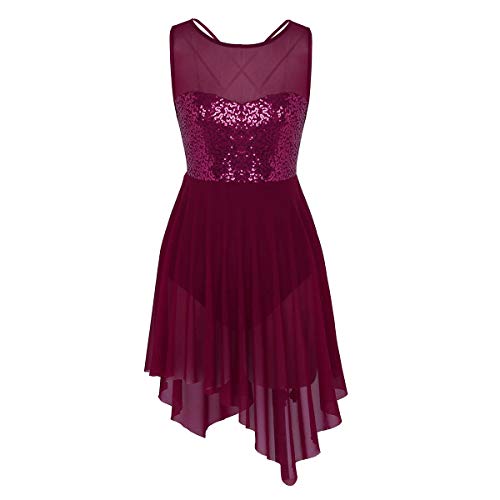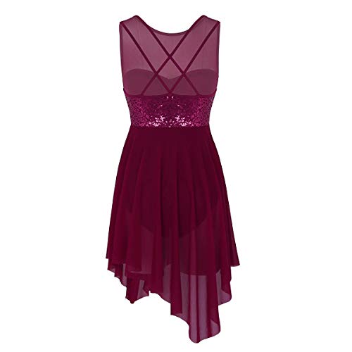 iiniim Maillot Espalda Cruzada Malla Lentejuelas Brillante Vestido de Danza Ballet Baile Mujer Leotardo Gimnasia Clásico Body Adulto Mono Bodysuit Ropa Traje Fiesta Actuación Vino Tinto Medium