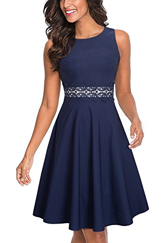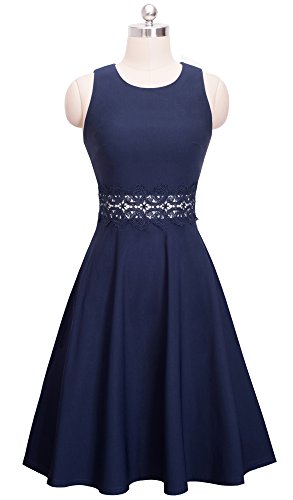HOMEYEE Vestido de cóctel sin Mangas Bordado de la Vendimia de Las Mujeres UKA079 (EU 36 = Size S, Azul Oscuro)