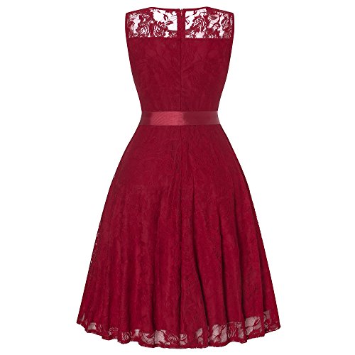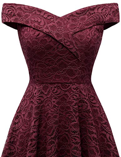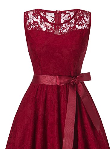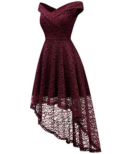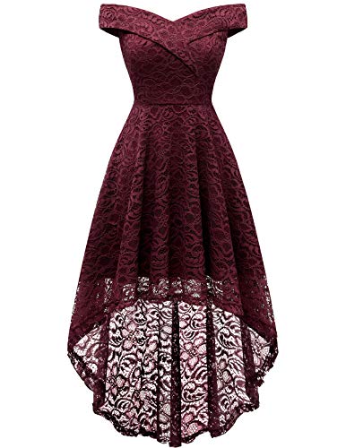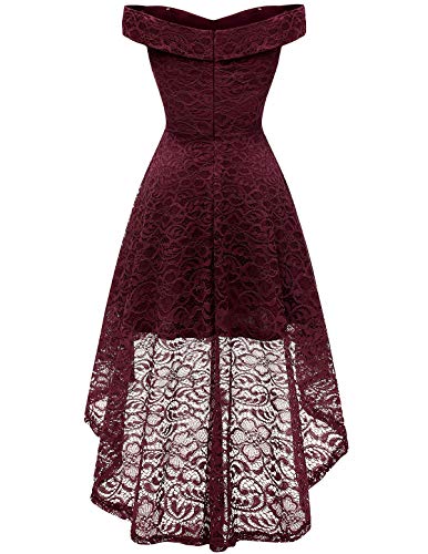 Homrain Vestido Cóctel Vintage A-línea Hi-Lo Elegante Encaje Fiesta Noche Vestido para Mujer Burgundy 3XL