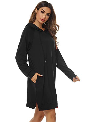 Sykooria Sudadera Larga con Capucha para Mujer Vestido Deportiva de Algodón con Bolsillos Jersey de Casual de Otoño Invierno de Color Sólido