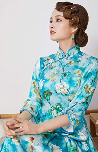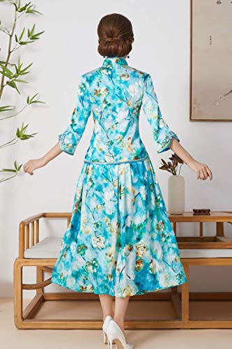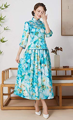 - Blusa y falda de ajuste Cheongsam, camisa de cheongsam de estilo chino, heredó los elementos clásicos del cheongsam, elegante y suave, con media falda, elegancia visual y armonía, líneas suaves, elegante gusto femenino, sabor de alta calidad.