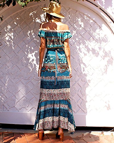Minetom Mujer Vintage Boho Sin Tirantes Camisa Blusa Crop Top + Maxi Falda Dos Piezas Conjuntos Cóctel Noche Fiesta Playa Vestido Largos Azul ES 34