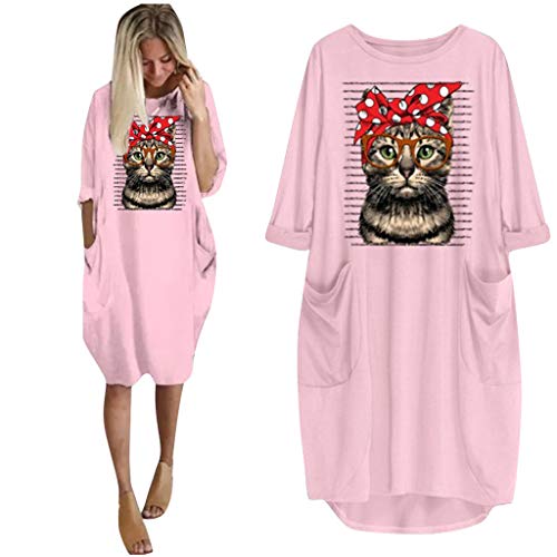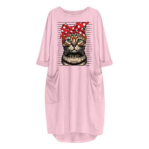 OPAKY Camiseta Mujer Verano Moda Oreja de Gato Impresión Manga Larga Tallas Grandes Camiseta con Capucha Blusa Camisa Basica Camiseta Suelto Estampado Tops Casual Fiesta T-Shirt Mini Vestido Corto