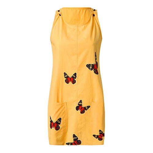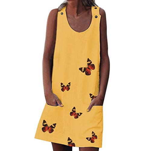 Vestido de AlgodóN y Lino Mujer, Dragon868 Vestido Estampado Mariposa de Verano de Playa, Sin Mangas Vestidos de Fiesta con Botón, Talla Grandes Mini Vestido Corto Casuales