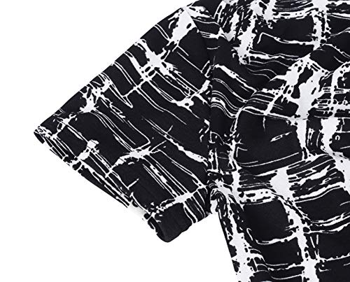 HenzWorld - Vestido a Media Pierna con Cuello Redondo y Estampado Informal para Mujer Vestido Ajustado de Manga Corta con Cuello Redondo y Sexy para Mujer Negro Talla L