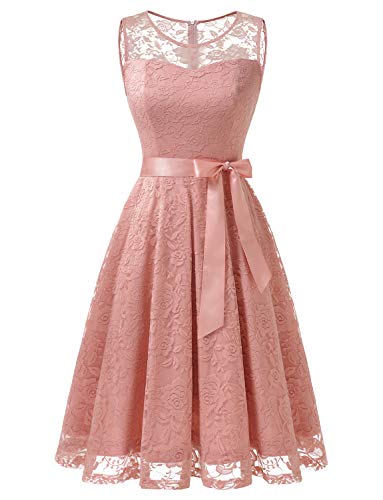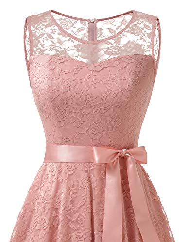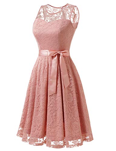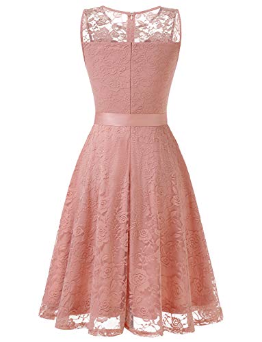 Dressystar Vestido Fiesta Corto Encaje Estampado Flor Elegante Mujer Sin Manga Vestido para Madrina Rubor L
